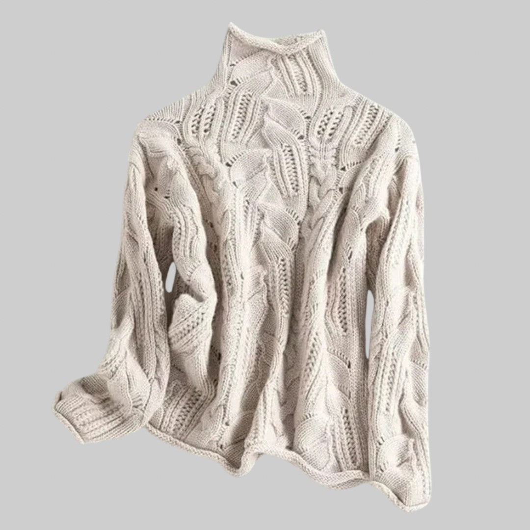 Надежда – Кашмирен поло пуловер с плетен мотив
