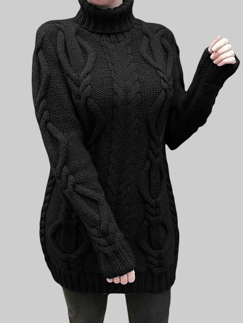 Бранка - Плетена рокля с дебела плетка и поло яка