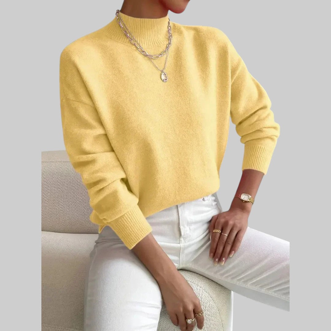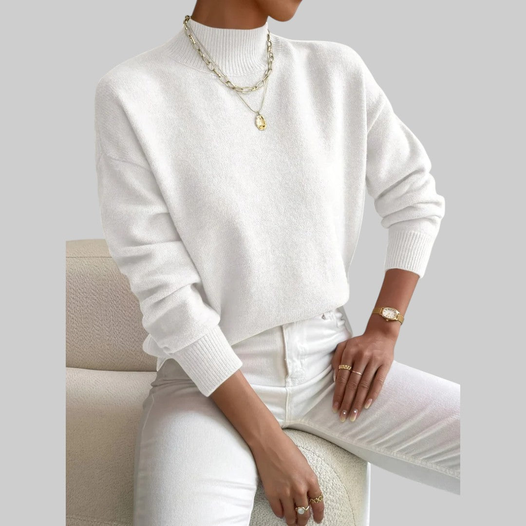 Поло пуловерът Зденка е перфектният избор за стилен и топъл вид през студените месеци. Съчетава мека, еластична материя с вечен дизайн, благодарение на който винаги изглеждате удобно и подредено – идеален за работа, свободен ден или уютна вечер у дома.