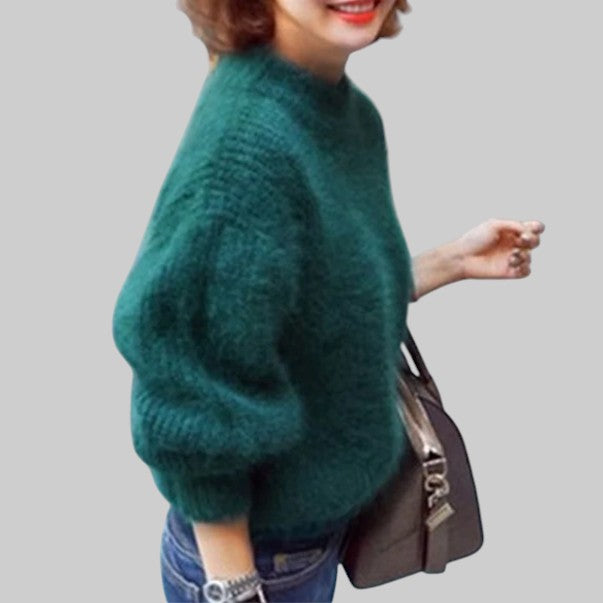 Пуловерът Барбора е изработен от висококачествена ангорска вълнена смес, изключително мека и приятна на допир. Фините влакна създават пухкава, „облачна“ текстура, която осигурява максимален комфорт през целия ден. Ще се влюбите в това колко добре пада, като същевременно ви топли без излишна тежест.
